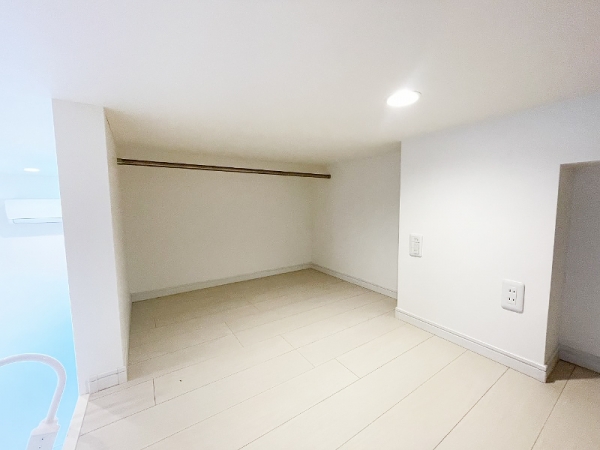 奥にはクローゼットポールが付いた収納スペースも完備。
