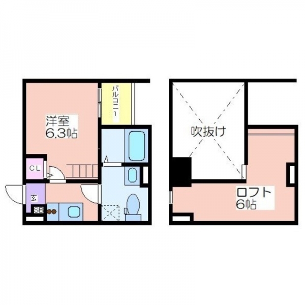 6.3帖の洋室+キッチン+ロフトの構成で、天井高も魅力。