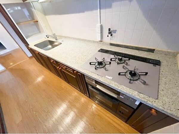 | シューズボックス、エアコン、室内洗濯機置き場、バルコニー、フローリング、TVドアホン、システムキッチン、給湯、シャワー付洗面化粧台、温水洗浄便座、浴室乾燥機、洗面所独立、バス専用、バス・トイレ別、シャワー、ガスコンロ、コンロ(三口) | |