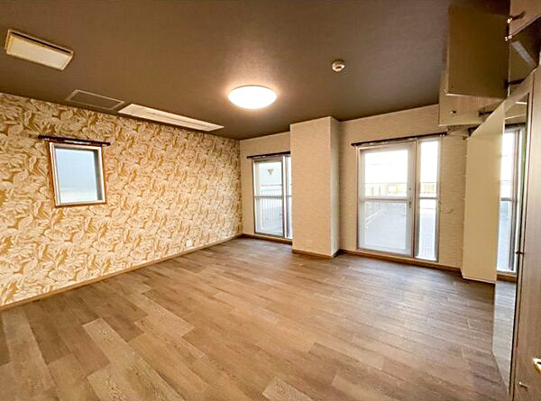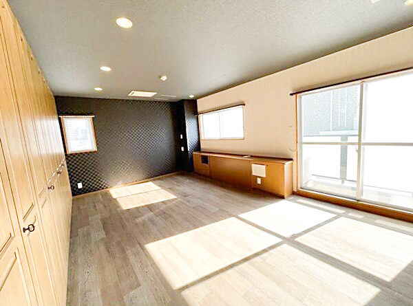 掃き出し窓からの光が対照的に映える部屋になっています。