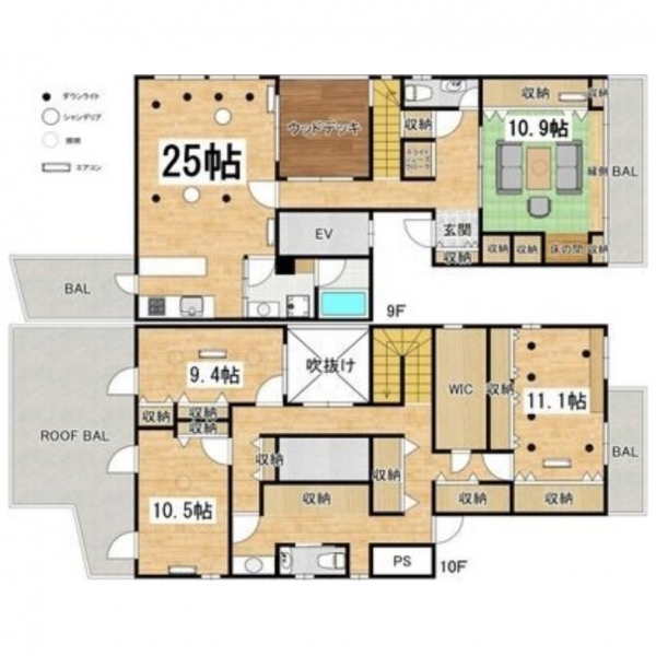 広々空間がポイントなメゾネットタイプの高級ファミリー部屋です。