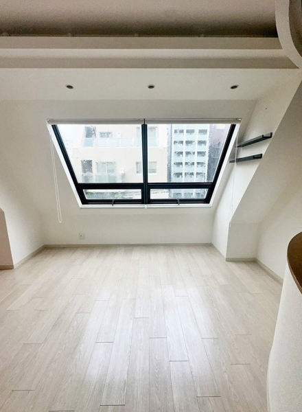 変わった間取りとガラスブロックがお洒落なお部屋です。