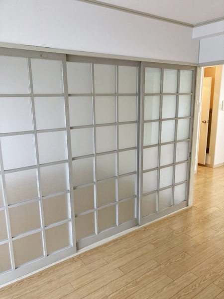 洋室と洋室を区切る引き戸は、すりガラス調で