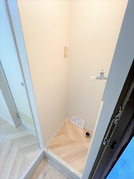 玄関入ってすぐのところに、室内洗濯機置き場があります。