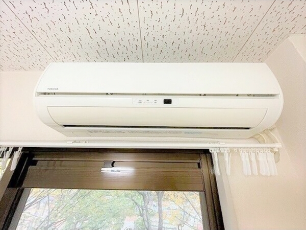 洋室の窓上に設置されたエアコンです。
