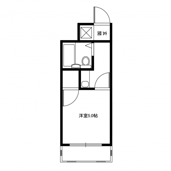 キッチンと5帖の洋室からなる間取り。