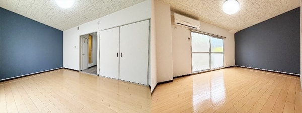 淡いブルーグレーのアクセントクロスが落ち着きを演出。