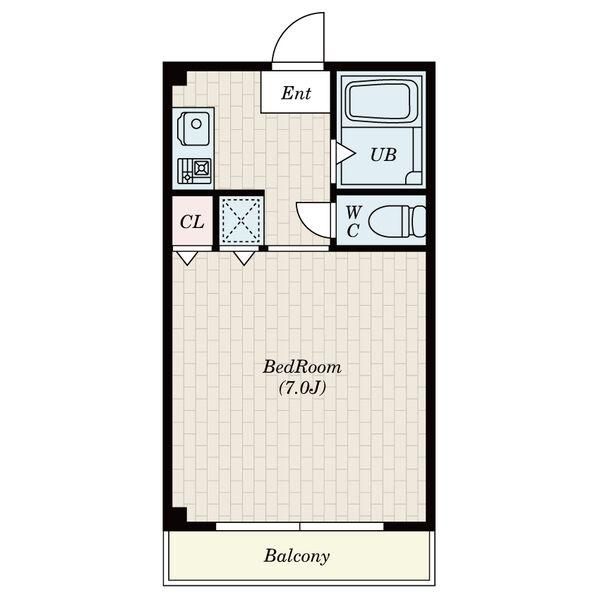 お部屋は1Fに位置する1Kタイプ(20.16平米)。