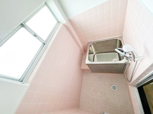 優しいピンクタイルがポイントの