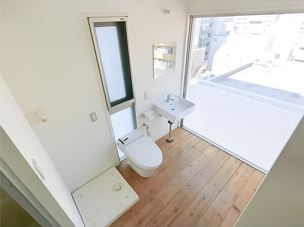 コンクリート打ちっぱなし×ホワイト壁のコントラストがお洒落な