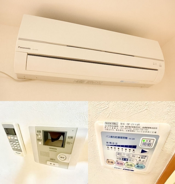 | システムキッチン、2口コンロ、バス・トイレ別、独立洗面台、室内洗濯機置き場、エアコン、光ファイバー、フローリング、バルコニー、モニタ付インターホン、専用トイレ、浴室乾燥機、給湯 | |