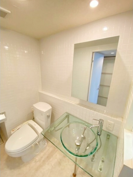 アメリカンセパレート式。ガラスボウルの洗面台や