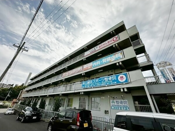 医療機関の看板が並ぶ外観は、地域密着の建物らしい安心感があり