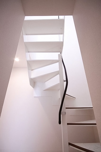 玄関奥には、目を引く螺旋階段がどっしり構えています。