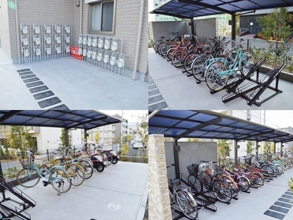 屋根付きの駐輪場で雨の日も安心。複数台の駐輪も余裕の広さデス。