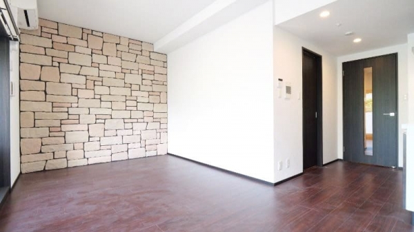 一番の注目は、壁面に施されたアクセントストーンです。