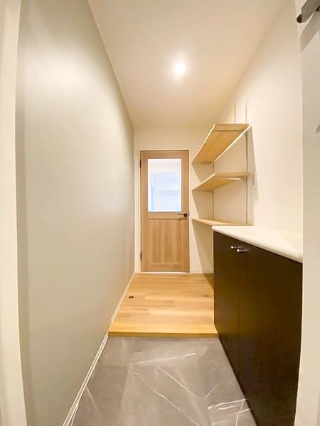 ホワイト基調の明るく清潔感ある玄関が広がっています。