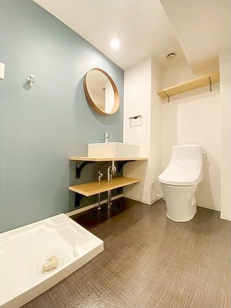 洗面脱衣所とお手洗いが一体となったサニタリースペース。