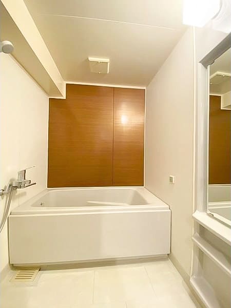 浴室は、ウッドなアクセントパネルが落ち着きをプラス!