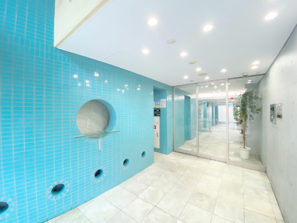 ガラス張りのエントランスへ抜ける動線に