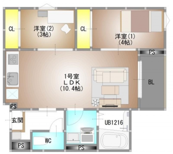 2LDK 専有面積:41.78 ㎡